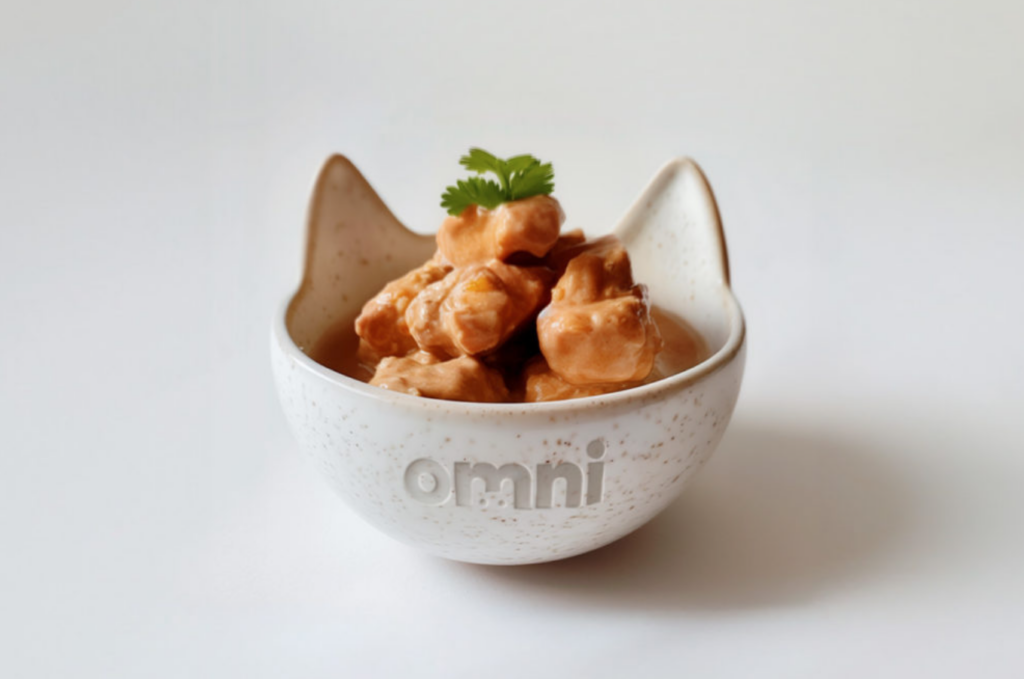 Meatly en Omni brengen kweekvlees, bedoeld als dierenvoeding, op basis van kip op de markt. – Foto: Omni